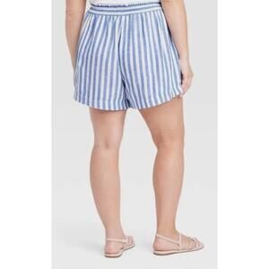 Ava & Viv Pull On Casual Shorts Linen Striped Womens Plus Size 3X Blue White