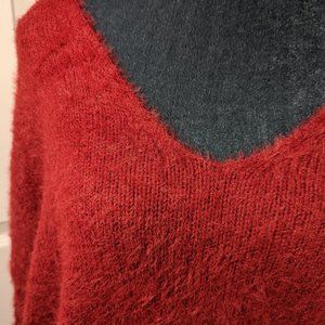 Ava & Viv Red Fuzzy V-Neck Sweater