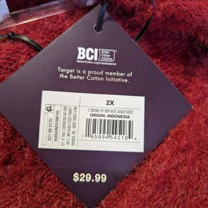 NWT Ava & Viv Fuzzy V-Neck Sweater. Color - Red. Size 2X. Cotton/nylon blend. Machine wash cold. See pics for measurements.