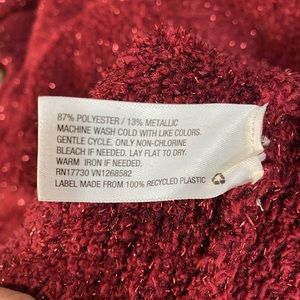 EUC Ava and Viv red ultra plush holiday sweater with red metallic woven in. Size is 3x. This is perfect for the holidays season. Has a modern v neck opening with lots of sparkle and shine.