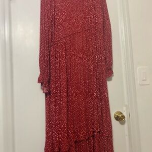 -Gently Worn -Minimal Wear from safety pin (pictured) -Maxi Length -Tie Neck -Ruffle Detail -57 3/4” L x 17.2 W