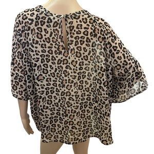 Ava & Viv Sheer Leopard Print Sheer Top Women’s Size 1X Ruffled Bell Sleeve