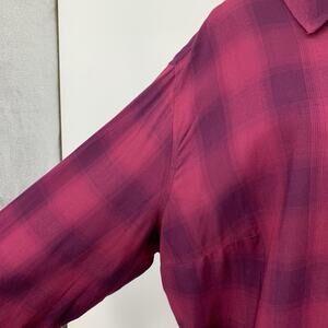 Ava & Viv Shirt Womens 3X Plus Berry Plaid Button Front Long Sleeve Shirttail