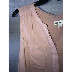 Ava & Viv Shirt Womens Plus Size 1X Pink V-Neck Button Up Blouse Pockets.