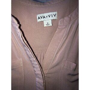 Ava & Viv Shirt Womens Plus Size 1X Pink V-Neck Button Up Blouse Pockets