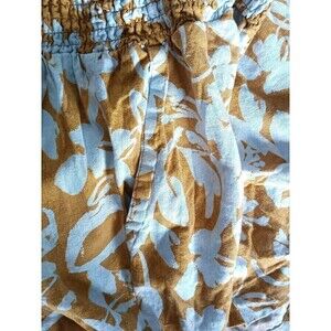 Ava & Viv Shorts Size 4X Linen Blend Gold Blue Smocked Utility Pull On Floral