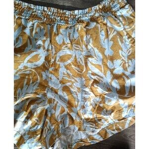Ava & Viv Linen Blend Smocked Pull On Shorts With Pockets Size 4X Gold Blue Floral Print 44" Unstretched Waist 4" Inseam 55% Linen 45% Rayon