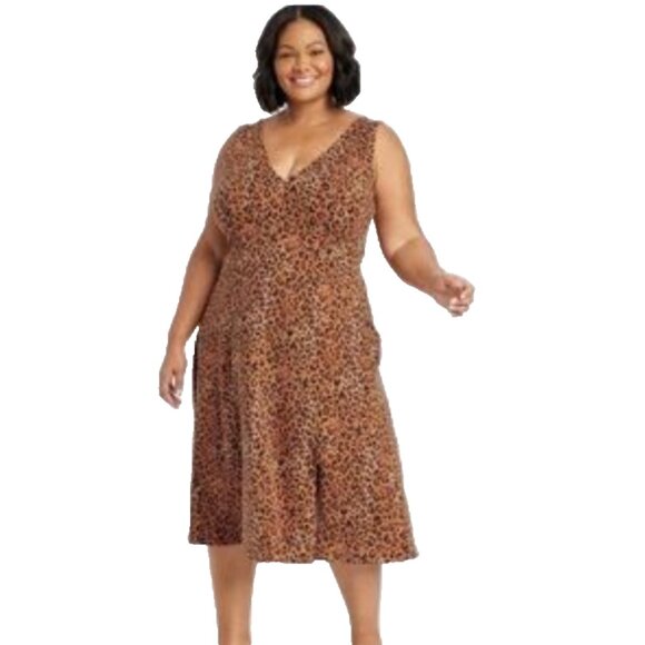 Ava & Viv Sleeveless Midi Animal Print Dress Womens 3X New without tags