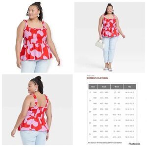 Ava & Viv Smocked Peplum Plus Size Top, Orange/Pink