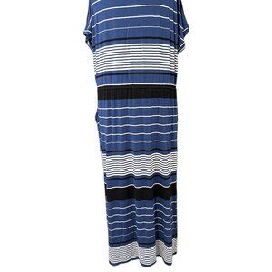 Ava & Viv Striped Max Dress with Elastic/Tie Waistline has both style and comfort. This dress has cuffed cap sleeves with dolman styling, scoop neckline, elastic/ tie waist line that can be pulled up and adjusted for comfort and long slits on each side of the hemline. Two side pockets complete the dress. Great for summer and easy layerying to transition from day to night. Very good condition, no rips, tears or stains. Size 4X