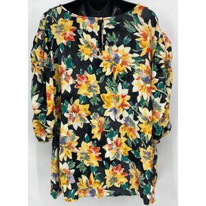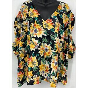 Ava & Viv Top Plus Sz 4X Black Floral Short Sleeve V Neck Keyhole Back Women New