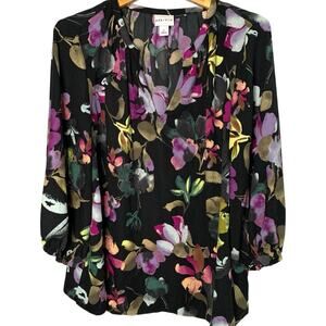Ava & Viv Top Women's Size 14 Floral Cottagecore Colorful V-Neck Pullover