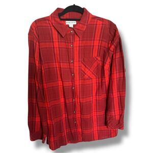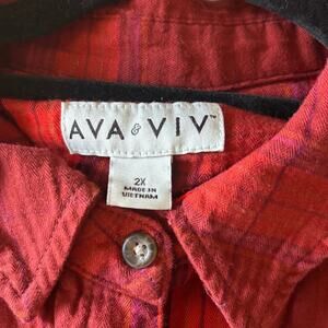 Ava & Viv Vibrant Red Plaid Shirt No Gap Plus Size Long Sleeve 2X