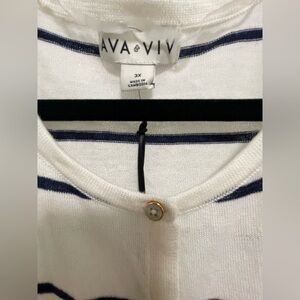 Ava & Viv White Cardigan with Navy Stripes