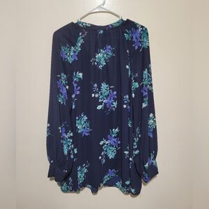 This Ava & Viv blouse features a relaxed fit with a charming and long sleeves, all in a soothing blue hue. The button-down style adds a touch of elegance, making it a versatile addition to any wardrobe. Perfect for both casual and semi-formal occasions, this top combines comfort with a classic design. Lightweight and flowy. Made with polyester and cotton materials. Excellent condition and quality. Somewhat sheer so will need a cami underneath. Tag says size 3X.