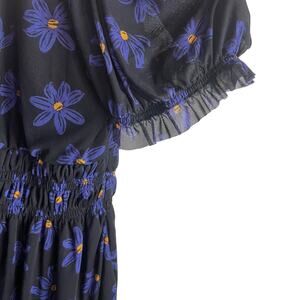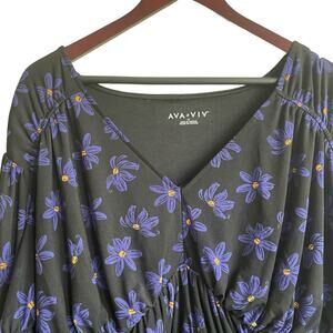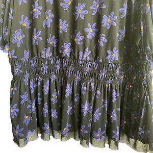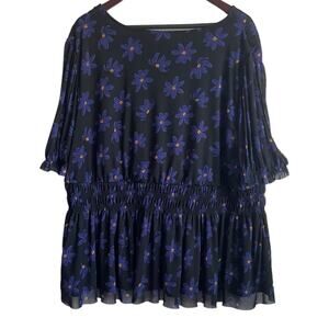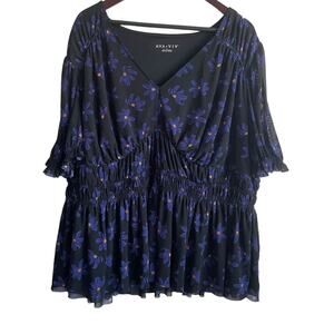 Ava & Viv Women Peplum Top 3X Purple Black Floral Print Flutter Sleeve Feminine