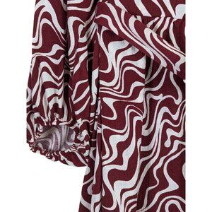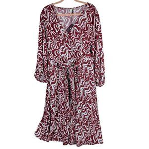 Ava & Viv Women Plus 1X Burgundy Swirl Balloon Sleeve Midi Belted Classic Dress