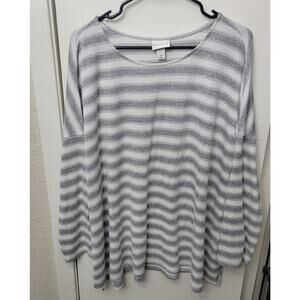 Ava & Viv Women Sweater Shirt 2XL Gray Striped Oversized Long Sleeve Round Neck Pullover Top. Very comfortable. Great pre-owned condition, no holes or stains. See pictures for measurements and condition.