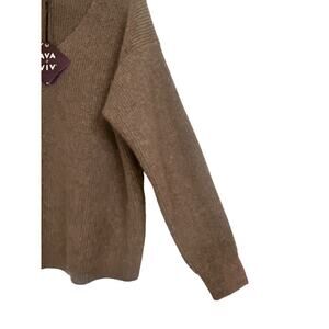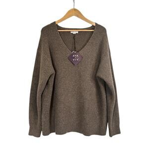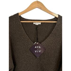 Ava & Viv Women V-Neck Soft Cozy Ribbed Knit Pullover Sweater Size 1X Brown NWT