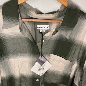 Keywords: plaid shirt, button down shirt, long sleeve shirt, womens shirt, ava & viv, plus size, 2X, green plaid, no gap button front, casual shirt, relaxed fit, oversized shirt, new with tags