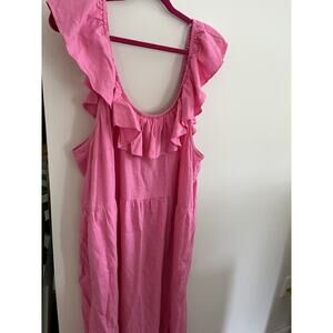 Ava & Viv Women's 2X Pink Linen Boho Maxi Dress/Beach Cover Up w Pockets