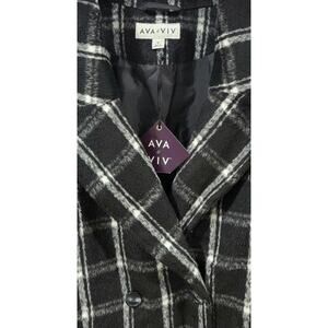 Ava & Viv Women's 4X Black & White Plaid Double Breasted Knee Length Overcoat