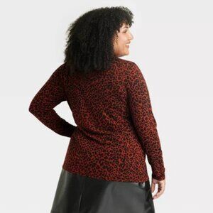 Ava & Viv Women's Animal Print Mock Turtleneck T-Shirt Long Sleeve Plus Size ( Animal print long-sleeve T-shirt, mock turtleneck, Mid jersey fabric with stretch, regular-fit silhouette, and below-waist length).