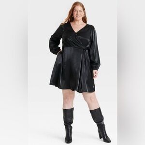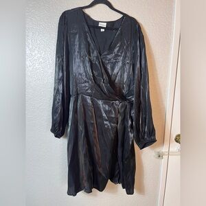 Ava & Viv Women's Balloon Long Sleeve Midi Wrap Dress - Black 3X
