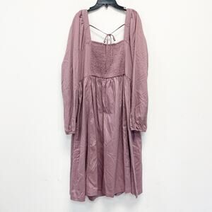 Ava & Viv Women's Balloon Long Sleeve Woven Midi A Line Dress Mauve Size 1X