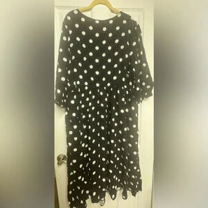 Ava and Viv black three-quarter sleeve dress with white polkadot size 3X plus size. Lightweight. Has pockets.