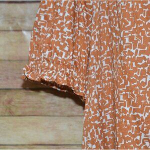 This stylish Ava & Viv blouse features a burnt orange & white print and pleated design, offering a casual yet elegant look. Perfect for plus-size women seeking comfort and style, its lightweight fabric ensures a comfy fit for everyday wear.