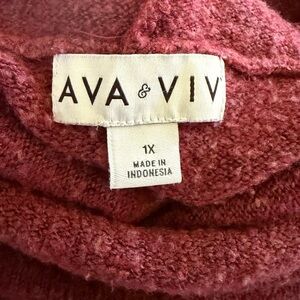 Elegant cowl neck pullover sweater by Ava & Viv in burgundy. Soft and warm fabric. Perfect for layering. size 1X. 75% Acrylic 21% Nylon 3% spandex Machine Wash cold. EUC. SFPF HOME.