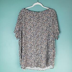 Ava & Viv Women's Cream Leopard Print Short Sleeve Round Neck Blouse Top Size 3X