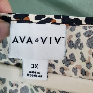 Ava & Viv Womens Cream Leopard Print Short Sleeve Round Neck Blouse Top Size 3X
