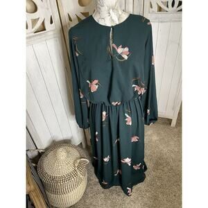 Ava & Viv Women's Dress Size X Hunter Green Floral Boho Cinch Waist Keyhole