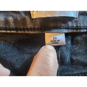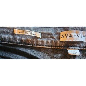 The Ava & Viv Women's Mid-Rise Cropped Skinny Jeans in Charcoal, size 26, are a stylish and comfortable choice for women. Made of denim fabric with a slim fit, these jeans feature a high rise and a raw frayed hem for a trendy look. The 5-pocket design with a zip and button closure offers practicality, while the charcoal wash adds a touch of sophistication. Perfect for everyday wear, these jeans can be machine washed for easy care.side to side 23 inches
