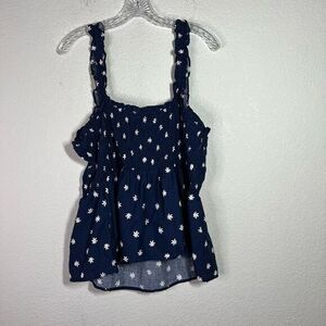 Ava & Viv Womens Navy Blue Floral Tops Smocked Peplum Sleeveless Size X
