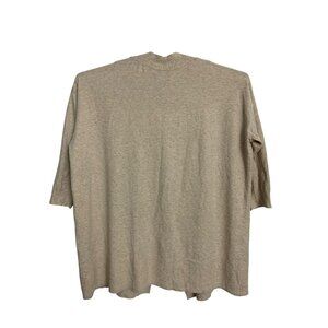 This Ava & Viv cardigan offers a sophisticated touch to your wardrobe with its neutral beige shade. Crafted from recycled polyester, it ensures both style and sustainability. The open-front design and 3/4 sleeves make it a versatile layering piece, suitable for various occasions.