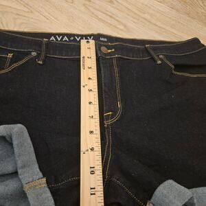 Ava & Viv Womens Plus Size 20W Midi Power Stretch Dark Blue Denim Rolled Shorts