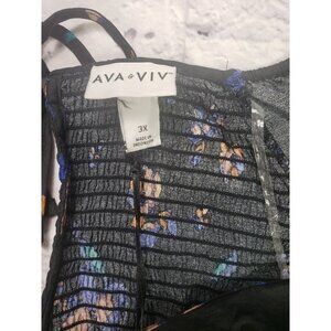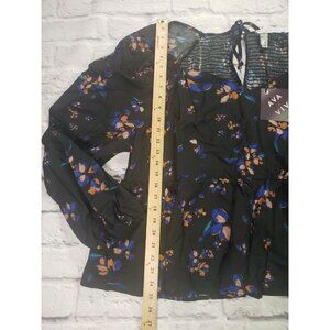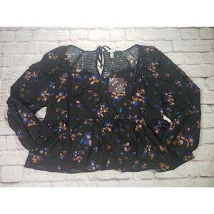 New with tags Ava & Viv Women's Plus Size 3X Long Sleeve V-Neck Babydoll Blouse Black Floral.
