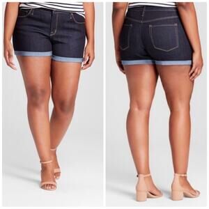 Ava & Viv Women's Plus Size Denim Midi Shorts, Dark Denim Wash Size 26W