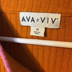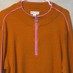 Ava & Viv Womens Shirt 3X Orange Pink Cotton Polyester Quarter Zip Plus Size