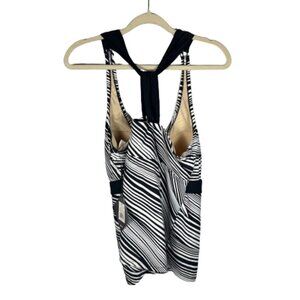 Ava & Viv Womens Swim Tankini Top Diagonal Stripes Black White Plus Size 20W