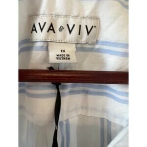 Ava & Viv baby blue striped Short Sleeve Button Down Top 1X Plus Size