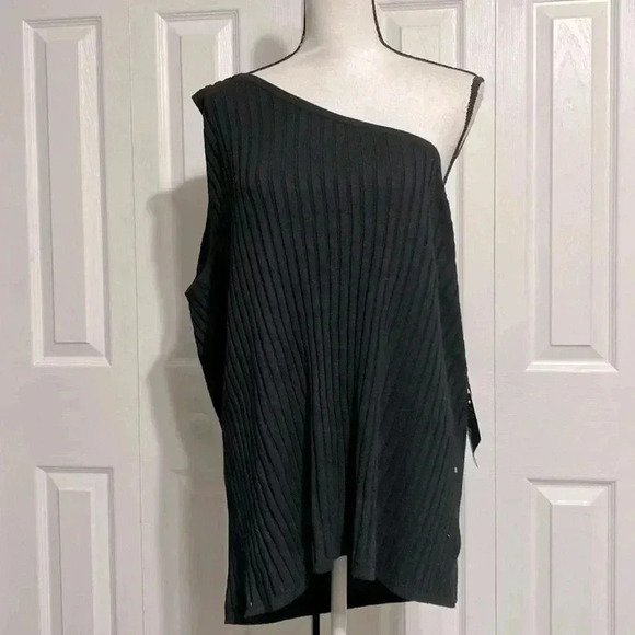 Ava & Viv black ribbed knit one shoulder top shirt NWT