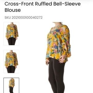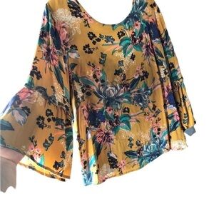 Ava & Viv floral strappy ruffled bell sleeve Fall Top Boho western Flowy fit