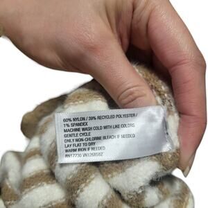 This cozy long sleeve sweater features a flattering V-neckline and a stylish tan and white striped pattern. The soft fabric provides comfort, while the relaxed fit ensures a comfortable, easy-going look. Perfect for casual outings or layering on cooler days.