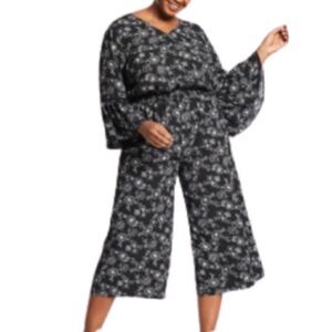 Ava & Viv Black and White Floral Wide Leg Jumpsuit Size 14W (X)