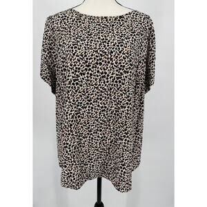 Ava & Vivi 1X Leopard Short Sleeve Button Back Blouse