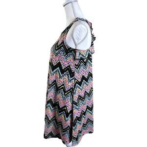 Details: Sleeveless A Line Mini/Tunic. A- Line with Multi Color Zigzag Chevron Pattern